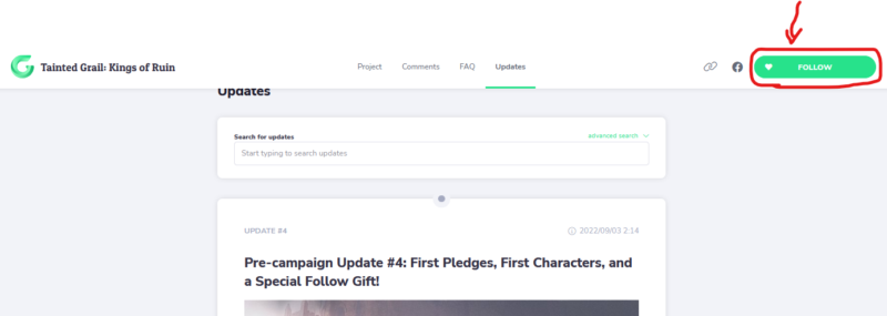 「ムーア人の黒い山羊」ギフトパックを受け取るには、キャンペーンのメインページにある緑の「フォロー」ボタンをクリックするだけです。