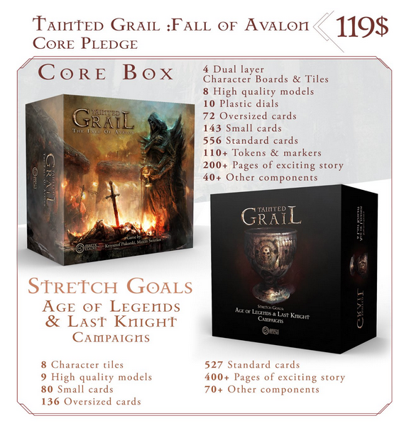 2つ目に公開したいプレッジは、「Tainted Grail」の2.0版です。2019年のオリジナル・クラウドファンディング・キャンペーンでのストレッチ・ゴールがすべて含まれた「アヴァロンの陥落」です。