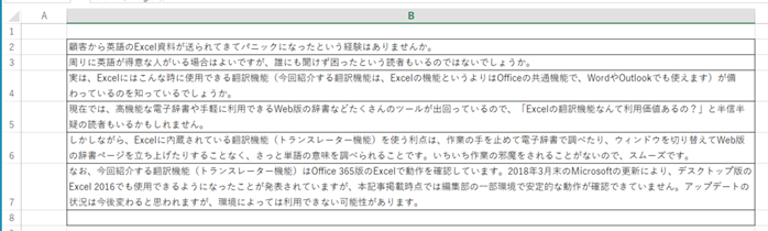 ① Excelに記載した日本語の文書を読み込む
