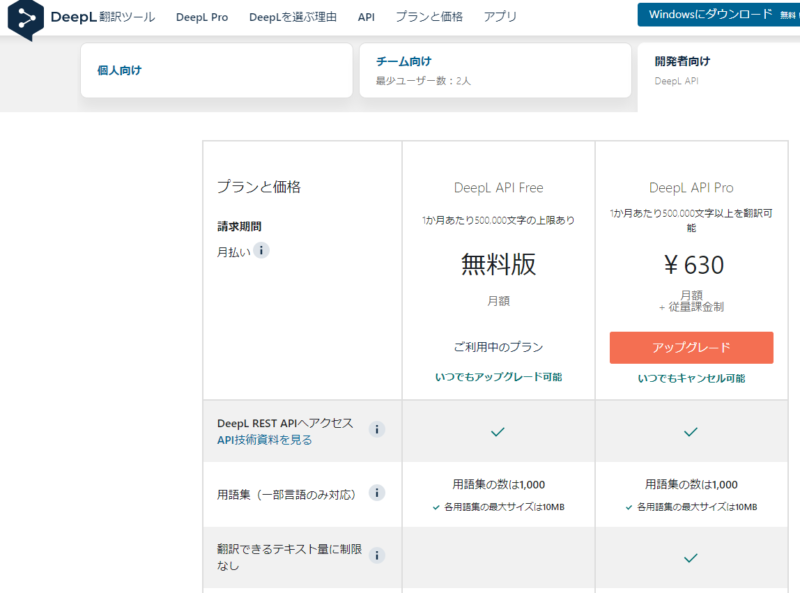 https://www.deepl.com/ja/pro/change-plan#developer