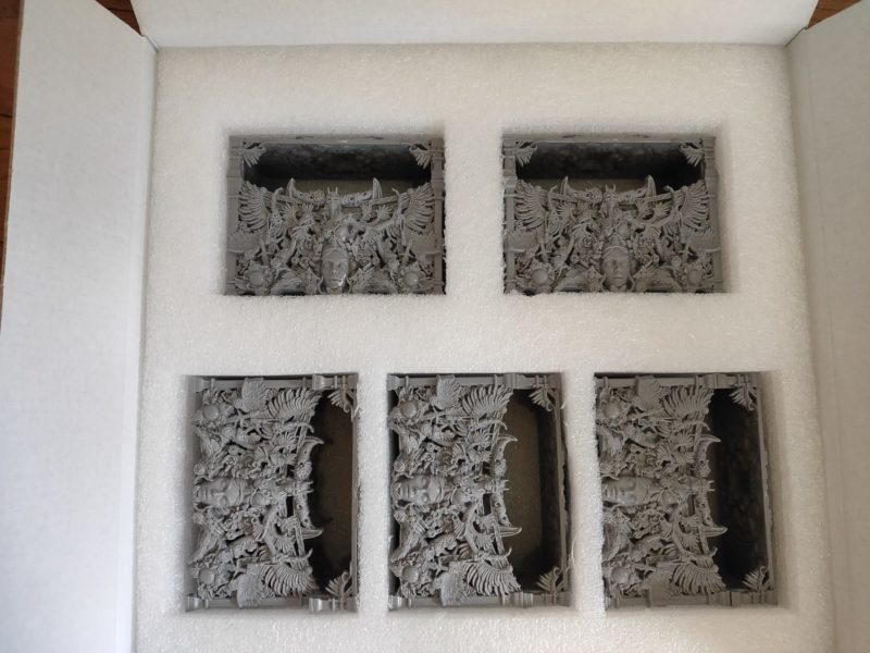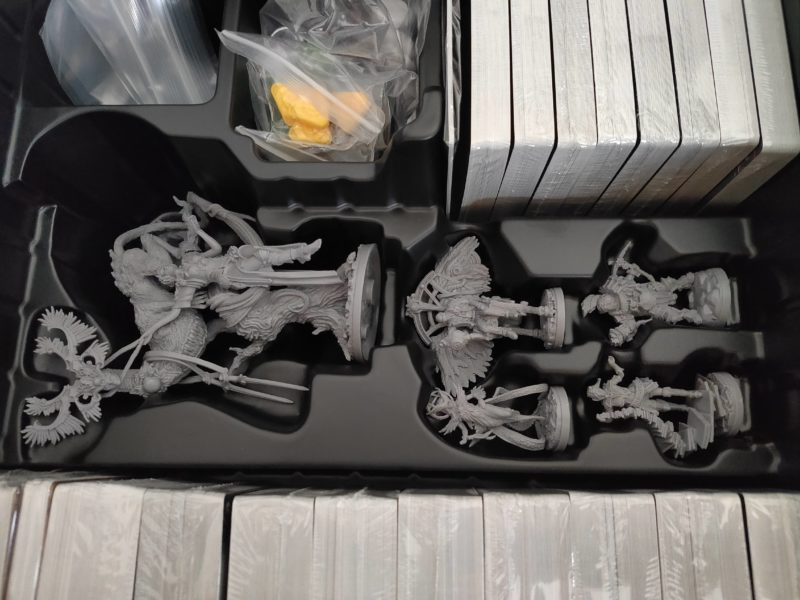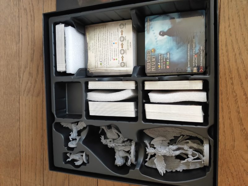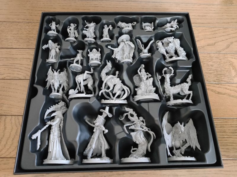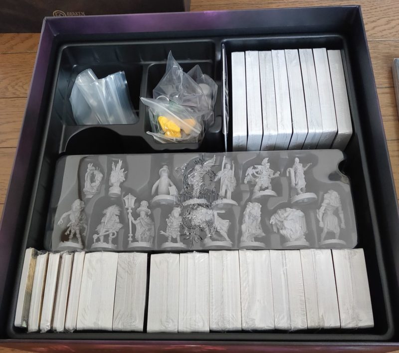 テインテッド・グレイルの制作会社 Awaken Relms社です。カードが多い、ミニチュアが精密というのは同じ流れです。ケースの構成も同じ感じですし、洗練されていて好きです。