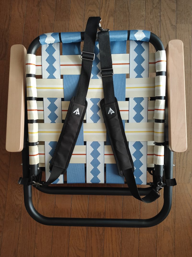 リュックタイプの椅子です。品質が大満足です。フレームは太くてしっかりしているのですが軽いですし、手を置く場所は本物の木です。